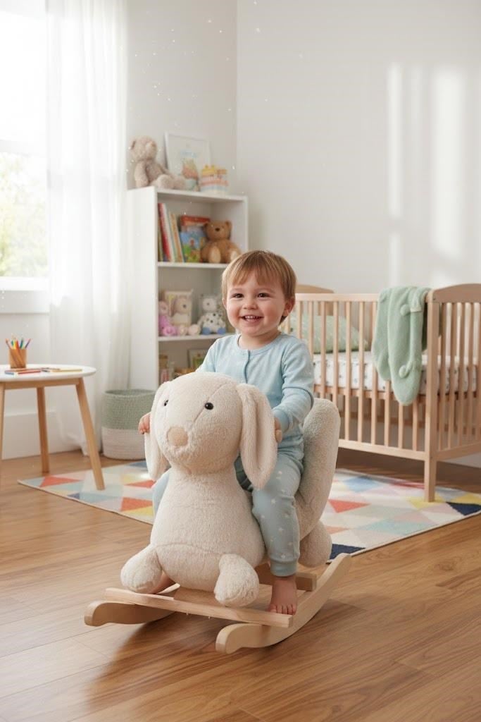 Modern&Kaliteli Çocukların hayal dünyasını süsleyen modern ve zarif tasarımlı ahşap ayaklı sallanır tavşan, eğlence dolu saatler sunuyor