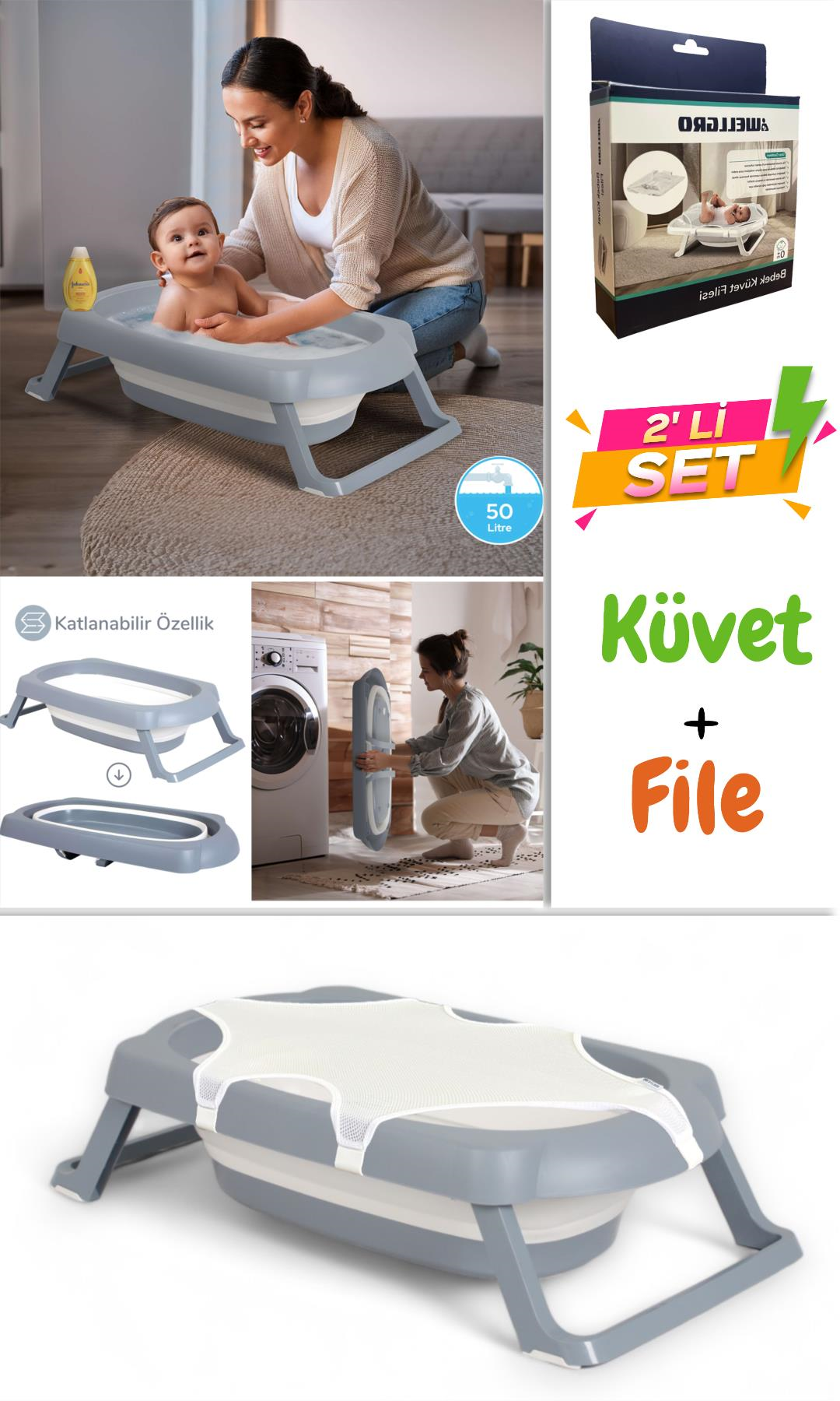 Wellgro Katlanır Bebek Küveti ve Filesi