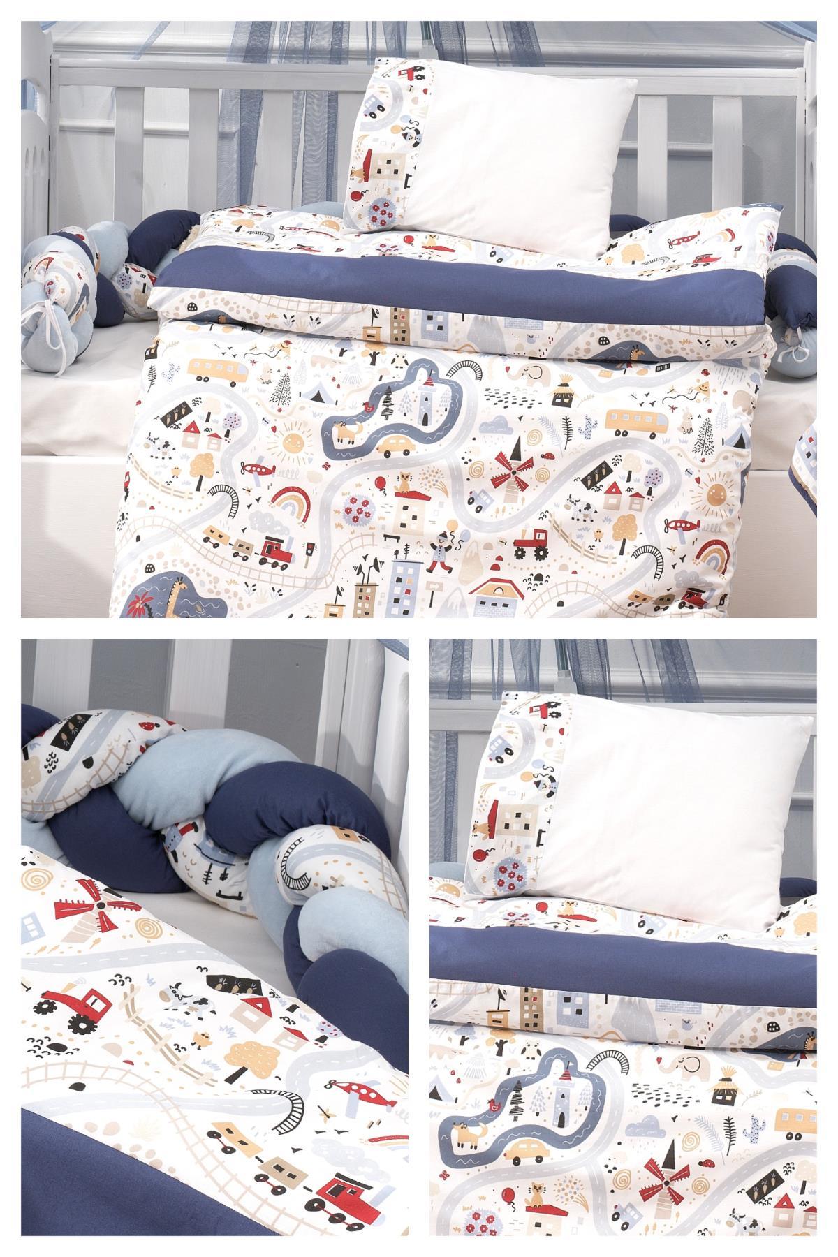 Setimiz içinde bebek karyola ve park yataklarına uygun ölçüde aşağıdaki parçalar mevcuttur. Yorgan ve yastık kılıfı çıkarılabilir olduğundan ayrı parça olarak yazılmaktadır. Ürünlerimiz pamuklu kumaştan üretilmiştir. Lütfen sipariş vermeden önce yatak ölçünüzün uygunluğunu kontrol ediniz.
