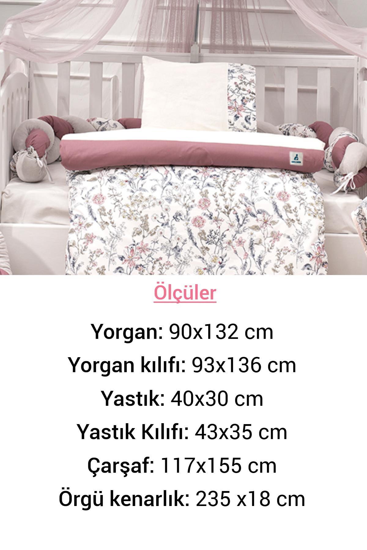 Setimiz içinde bebek karyola ve park yataklarına uygun ölçüde aşağıdaki parçalar mevcuttur. Yorgan ve yastık kılıfı çıkarılabilir olduğundan ayrı parça olarak yazılmaktadır. Ürünlerimiz pamuklu kumaştan üretilmiştir. Lütfen sipariş vermeden önce yatak ölçünüzün uygunluğunu kontrol ediniz.