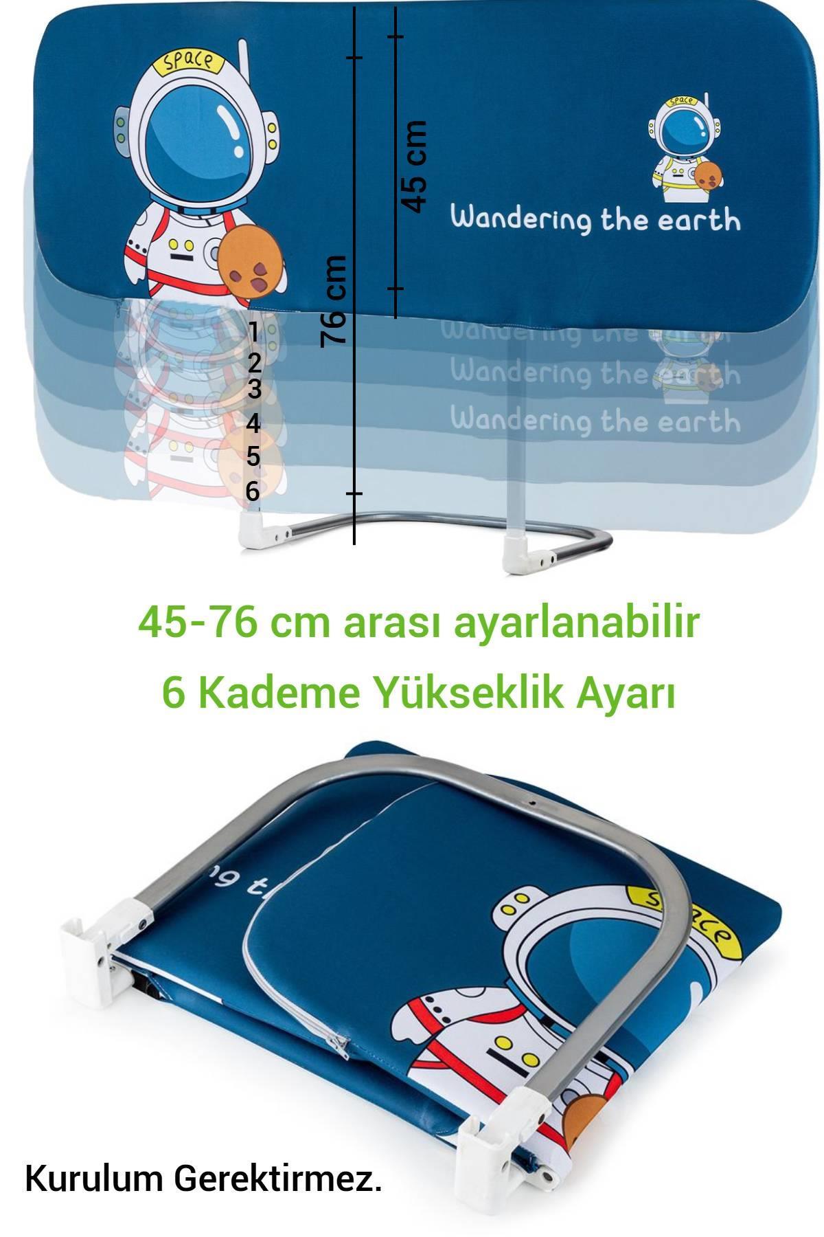 Ürünümüz sol sağ tarafından katlanma özelliğine sahiptir. İsterseni yatağın köşe taraflarına da kolaylıkla kurabilirsiniz. Ürün kutusundan kullanıma hazır olarak çıkmaktadır. Montaj gerektirmez. Kaldırılmak istediğinde kolaylıkla toplanıp çok az yer kaplar. Yükselik 6 kademeli olup 46-76 cm arası ayarlanabilir. Yetişkin kullanımına uygun değildir.