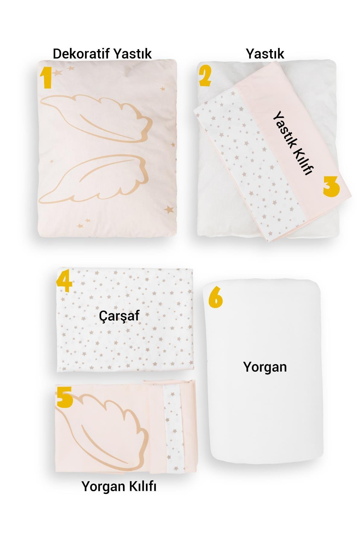Wellgro 6 Parça Park Yatak Bebek Uyku Seti Özellikleri: %100 pamuklu kumaştan imal edilmiştir. Antialerjik hava alma özellikli elyafıyla, bebeğinizin konforlu ve sağlıklı uyku uyumasını sağlar Ürünün yorgan kılıfı fermuarlı olup yıkanabilir özelliktedir. Ürünü üzerinde belirtilen talimata uygun yıkama ve ütüleme yapınız. Üründe polyester kumaş kesinlikle kullanılmamaktadır. Fotoğraftaki oyun park - park yatak teşhir amaçlıdır ve paket içeriğine dahil değildir. Ürün rengi ve deseni fotoğraf ile birebir aynıdır. Lütfen sipariş vermeden önce beşik ölçünüzün uyku setine uygun olup olmadığını kontrol ediniz. Ürün içeriği 6 parçadan oluşmakta olup detayları aşağıda belirtilmiştir: Yorgan : 70 X 135 cm