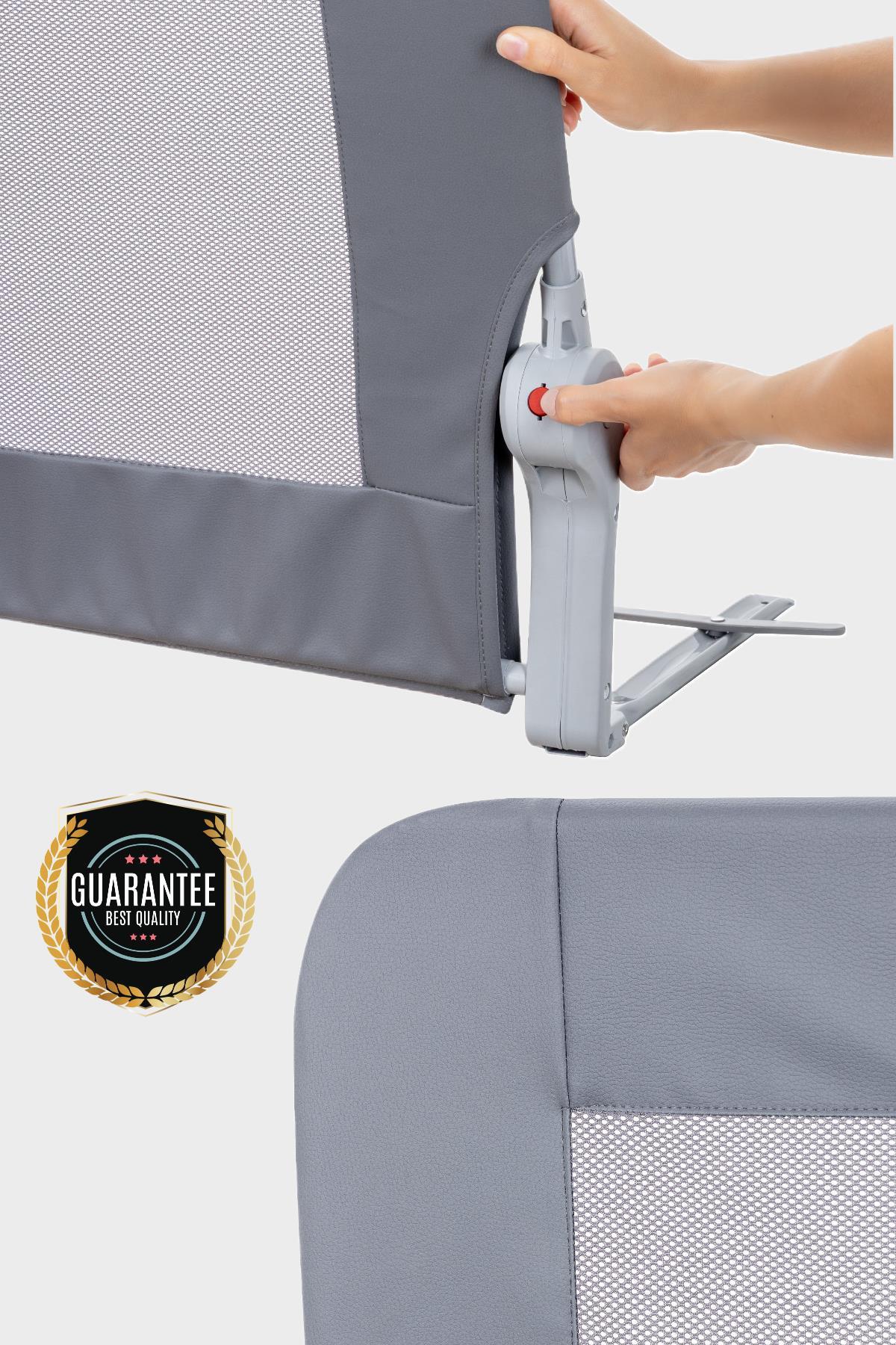 Wellgro Premium 120x65 cm Deri Kılıflı Yatak Bariyeri, Katlanır Yatak Korkuluğu, Gri