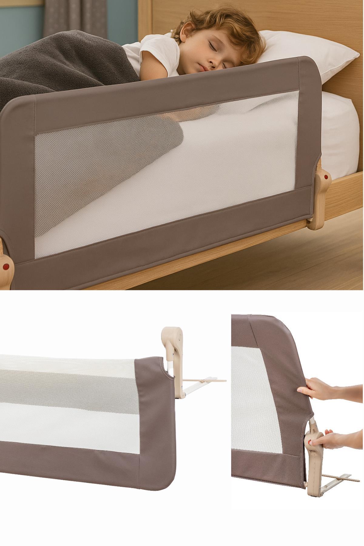 Wellgro Premium 120x65 cm Deri Kılıflı Yatak Bariyeri, Katlanır Yatak Korkuluğu, Kahve