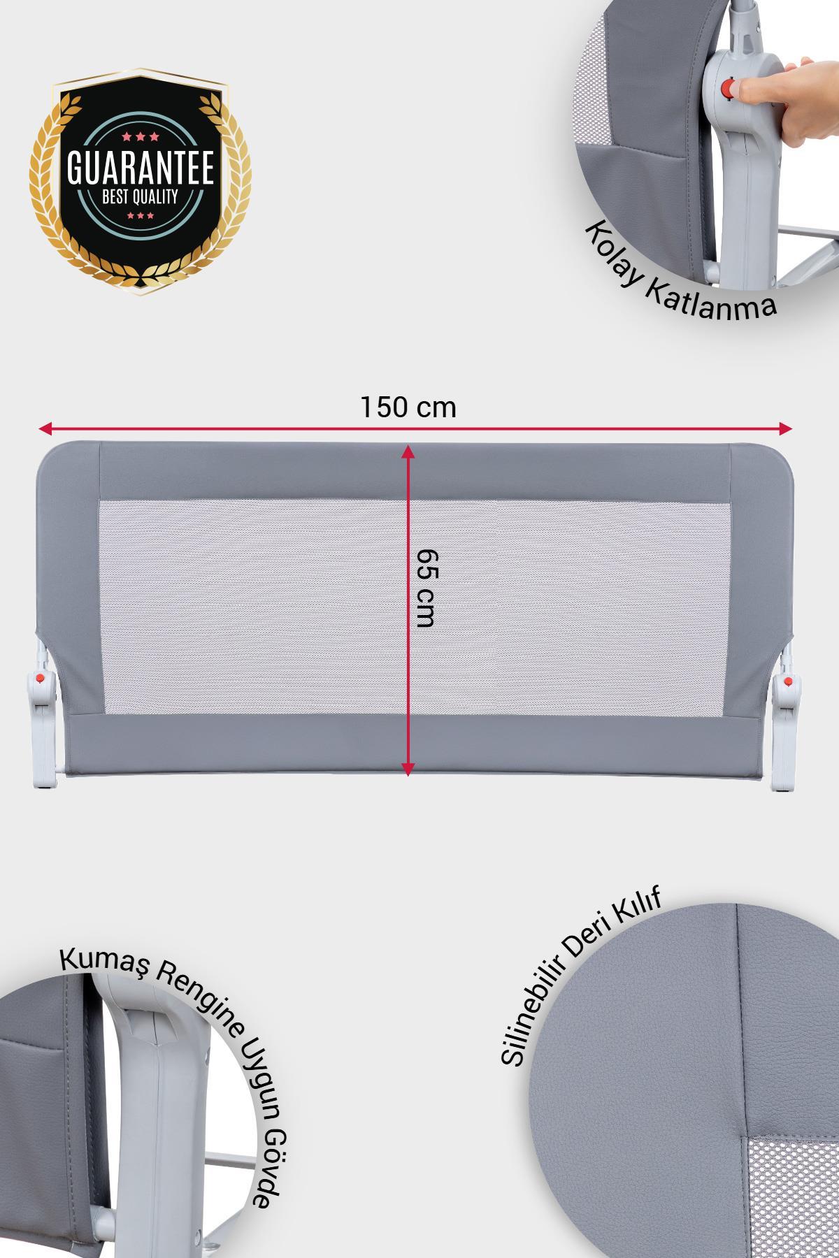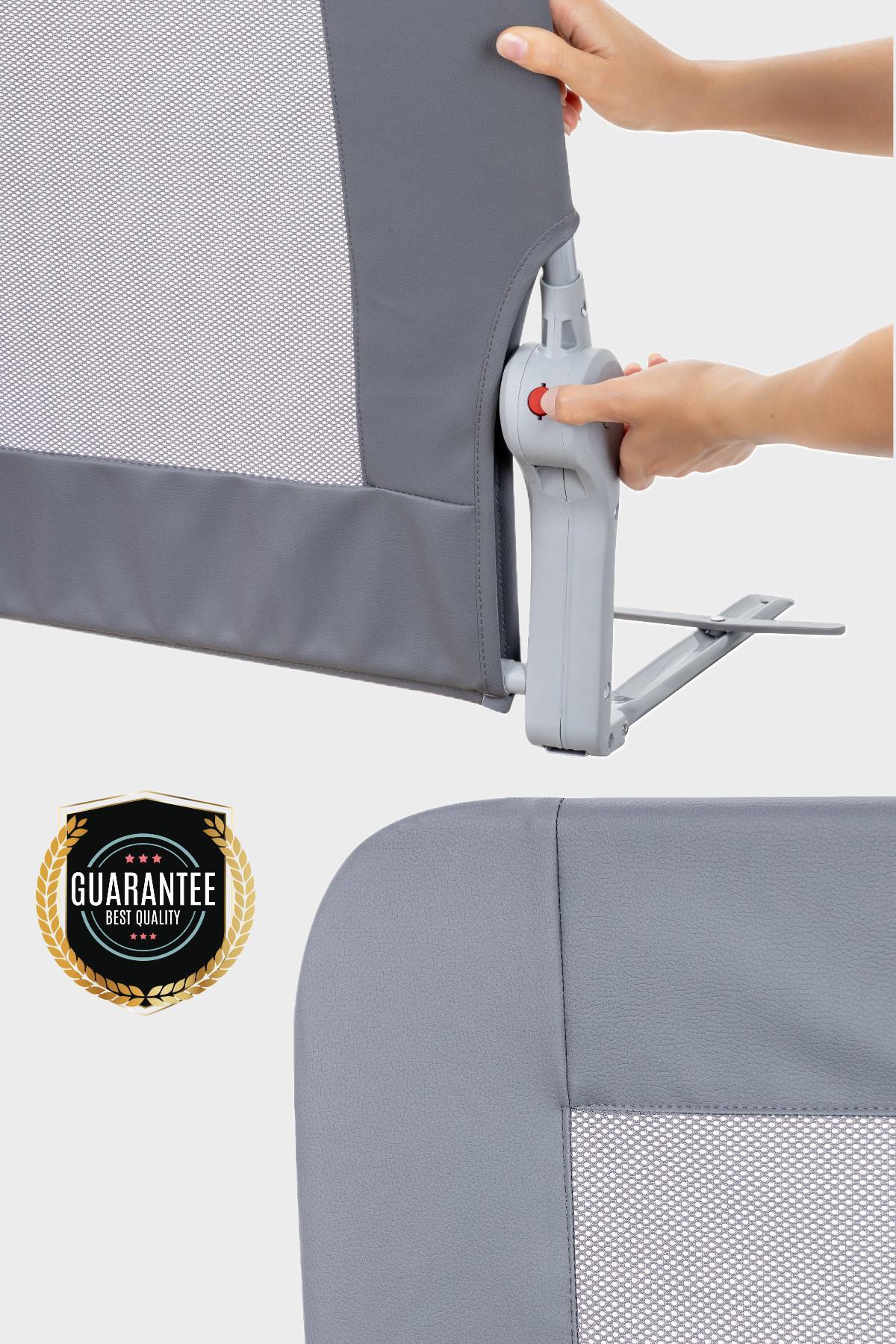Wellgro Premium 150x65 cm Deri Kılıflı Yatak Bariyeri, Katlanır Yatak Korkuluğu, Gri